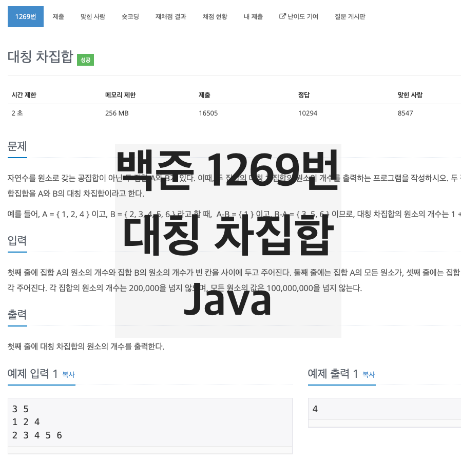 ๋ฐฑ์ค 1269 ๋ฒ ๋์นญ ์ฐจ์งํฉ ์ด๋ผ๋ ๋ฌธ์ ์ ๋๋ค.