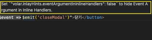 volar.inlayHints.eventArgumentInInlineHanders":false to hide Event Argument in Inline Handers