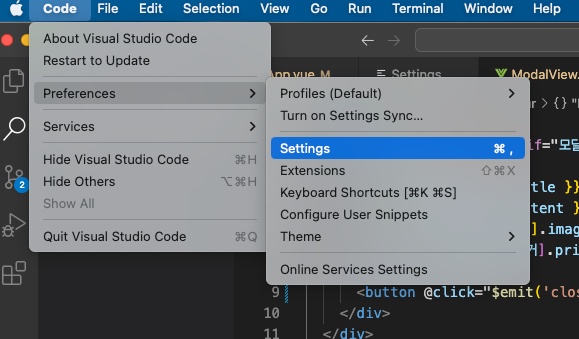 Perferences > Settting ๋ค์ด๊ฐ๊ณ ,