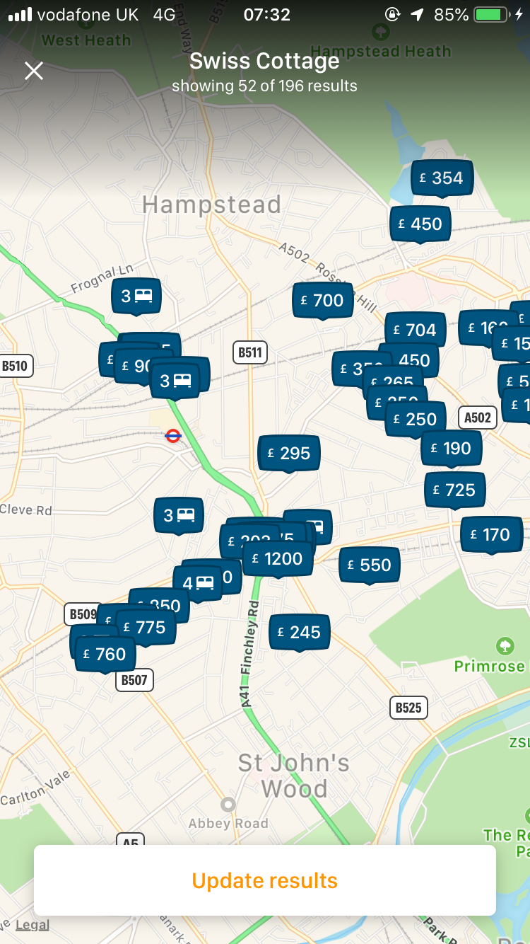 저는 비교적 안전하다고하는 swiss cottage 지역을 한번 검색해 볼게요!!
