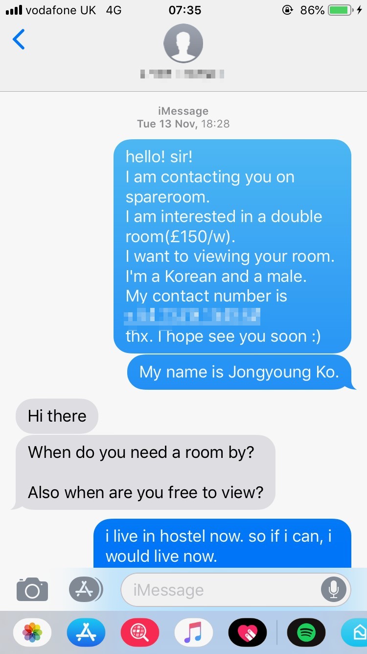 저는 spare room flat mating 을 가려고 약속을 잡았는데,