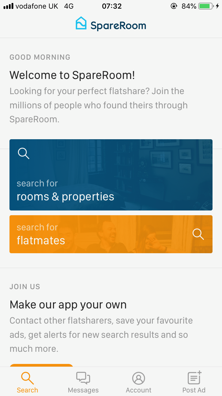 spare room이라는 어플을 통해서 집을 구해보도록 해보겠습니다!