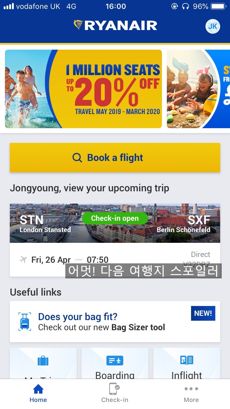 여기서 꿀팁하나 알려드릴게요! CHECK IN 하는 부분에서,