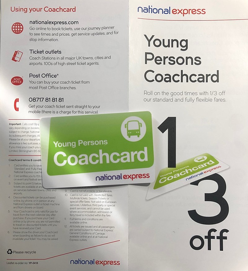 젊은 이들을 위한 카드에요, 가까운 NATIONAL EXPRESS 지점 가셔서