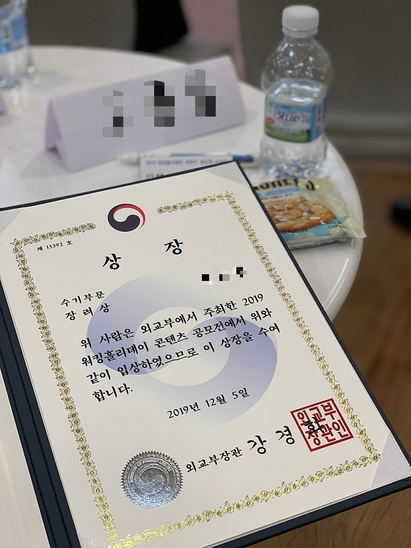 제가 언제또 이렇게 '외교부장관상'을 어디서 받아 보겠어요!