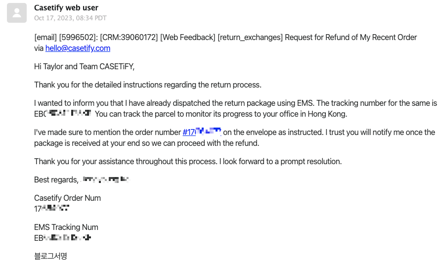 그래서 보면 케이스티파이 케이스를 환불신청 안하고,
