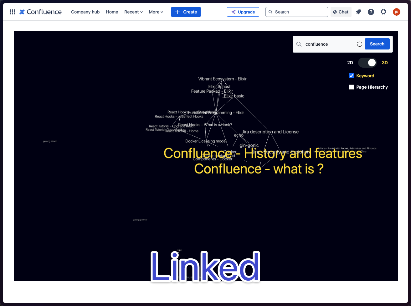 DocuLink is inspired by Obsidian, which visualizes data through graphs. Obsidian does an excellent job of showing the relationships between personal data, but its focus is on individual use. On the other hand, Confluence stores all the crucial company data, and this data is created collaboratively by coworkers. This means that data can sometimes be fragmented, making it harder to connect the dots across different teams and departments.
